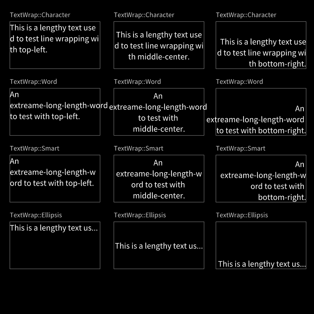 TextDemonstrate text wrapping modes with different alignments